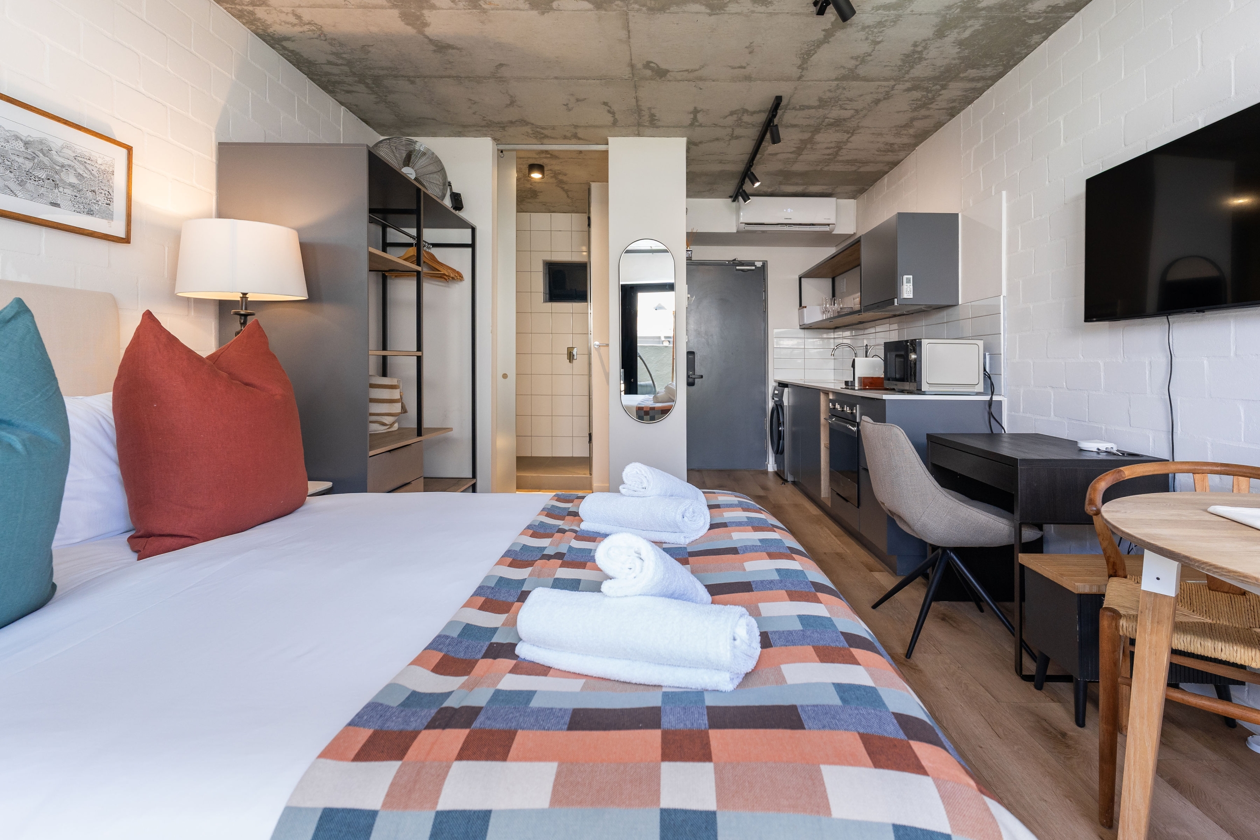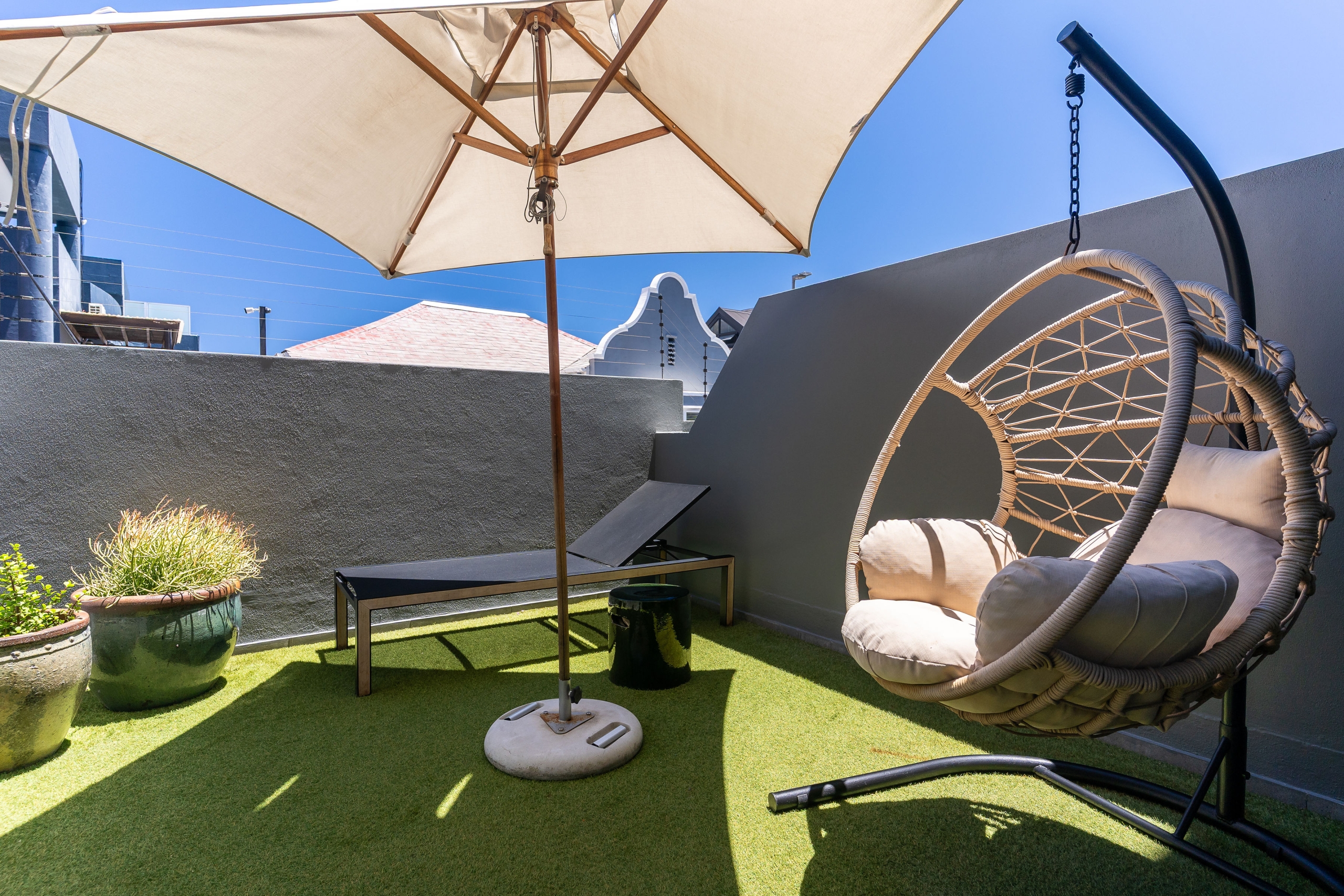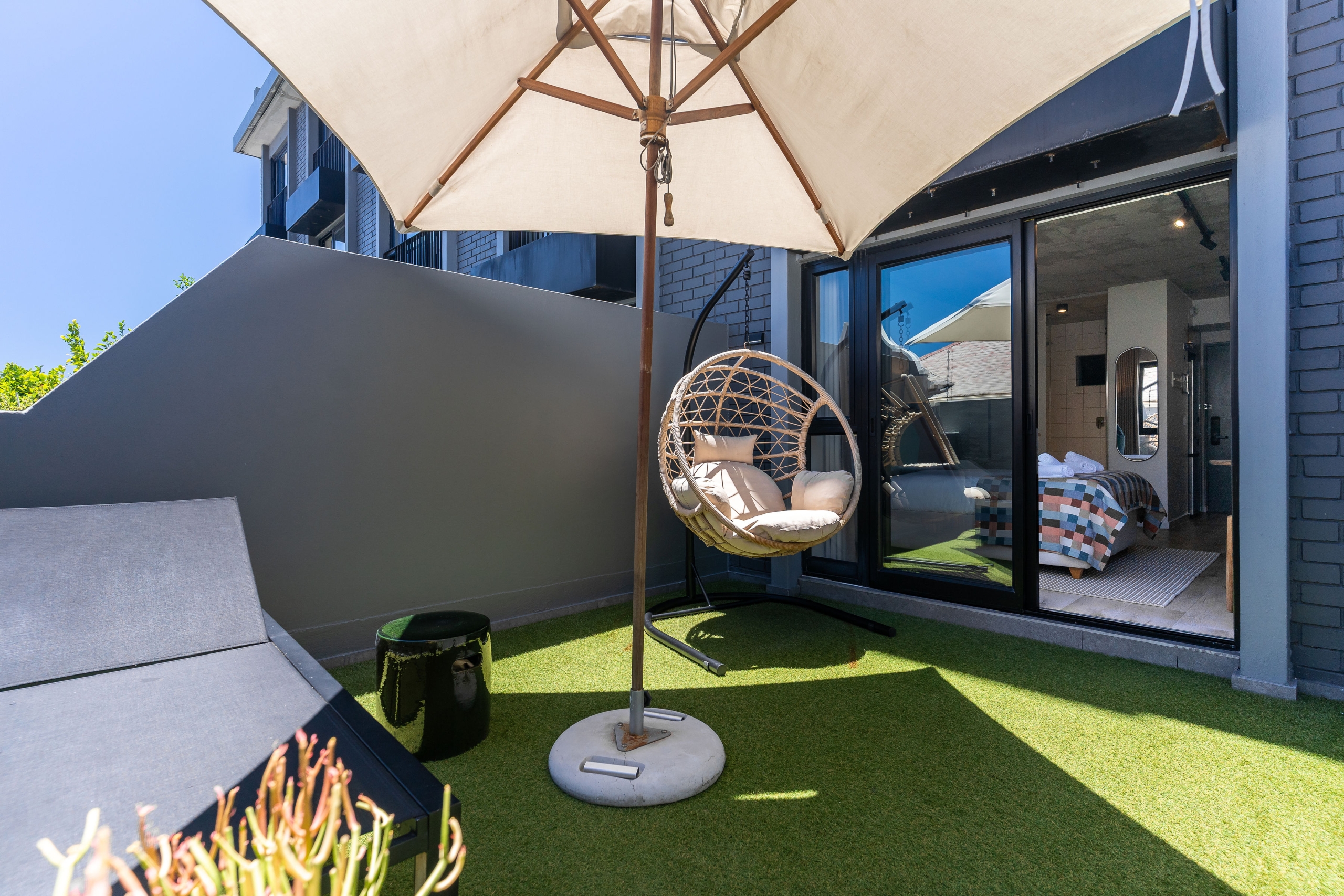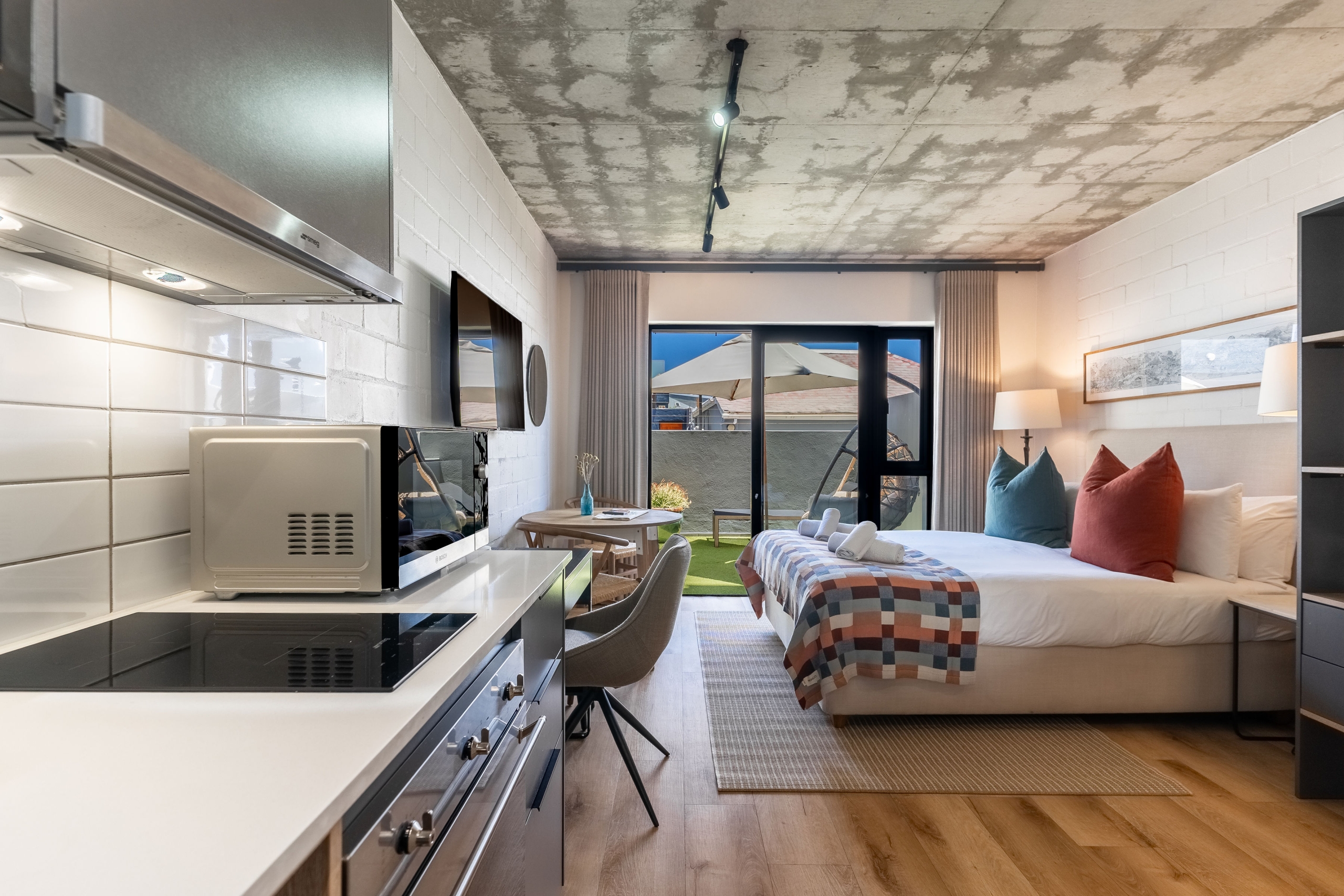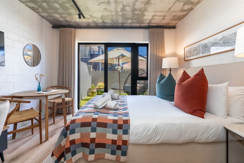 Enjoy an indulgent stay in our brand-new designer studio with a private courtyard where you can take in the sun or gaze at Signal Hill. We’ve taken care of all the details so you can fully enjoy the fun of being minutes away from trendy eateries, the Sea Point Promenade and Saunders Beach. To make the most of endless summer days, cool off in a communal rooftop pool with sweeping Atlantic ocean views.