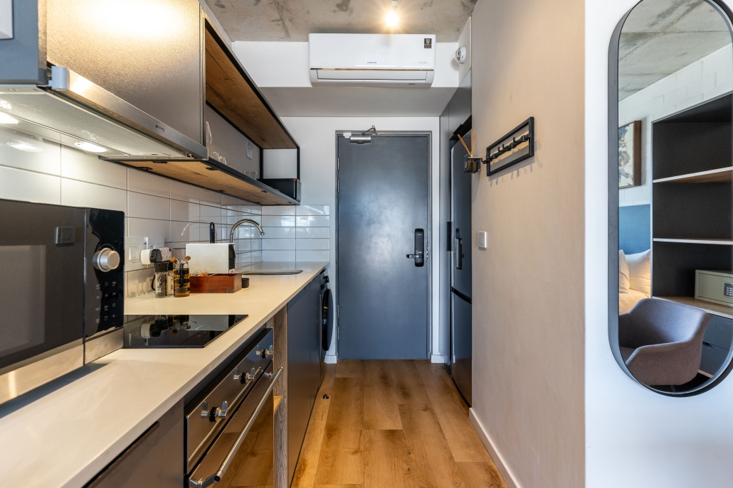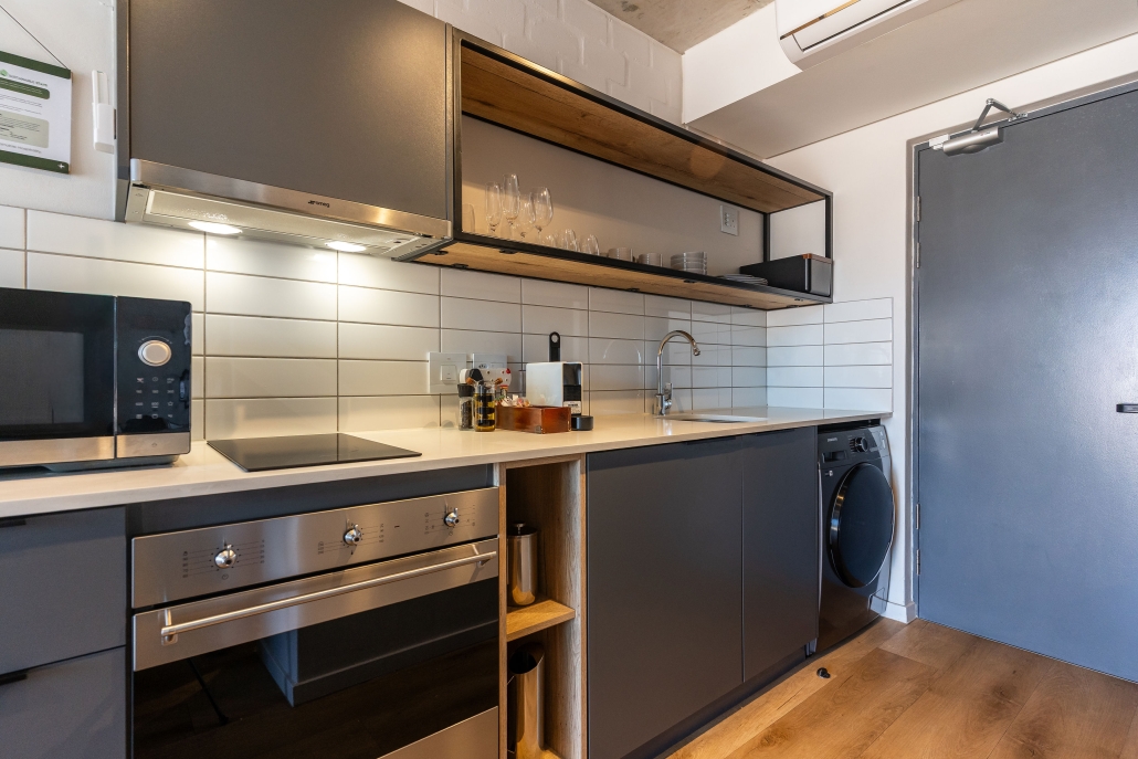 - The space is air-conditioned, with a well-equipped kitchen including a full-size fridge/freezer, and in-unit washer/dryer to maximize convenience and enable long stays. For coffee lovers, a Nespresso machine and plunger are available with some stock to get you started. If culinary inspiration strikes, you’ll find all you need with a range of quality cookware.